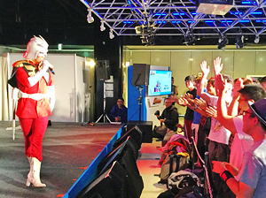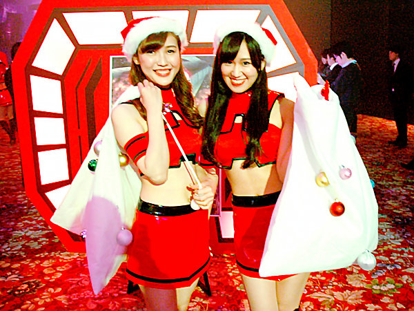 季節はクリスマス。ステージではバンドによるライブが行われました。クリスマスソングが鳴り響く会場ではジオンと連邦軍のロゴもクリスマス仕様に。ライブ中にはかわいいサンタさんから来場者に素敵なプレゼントも。